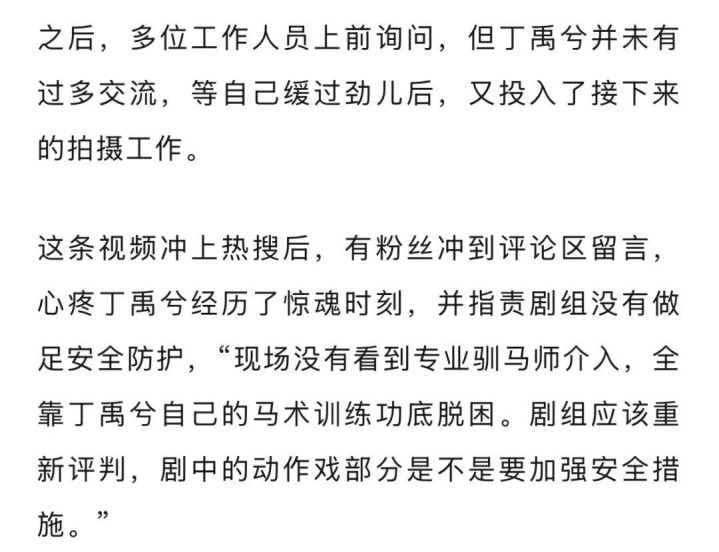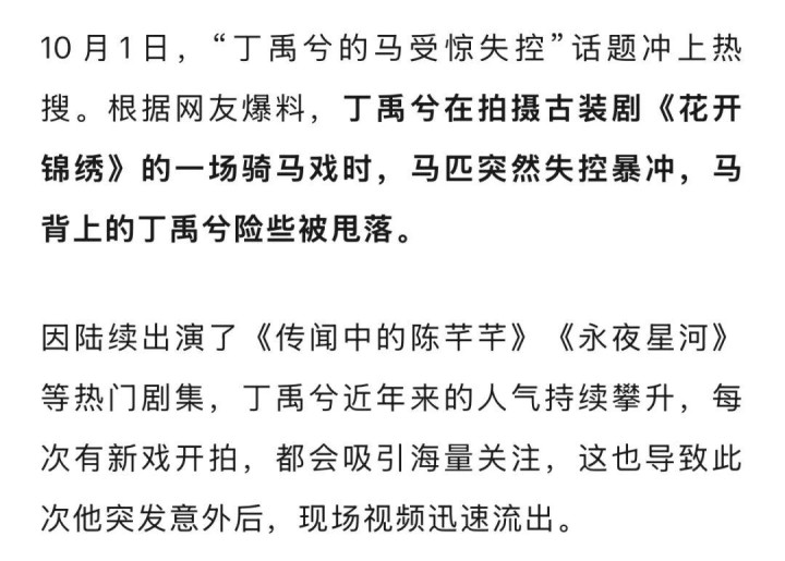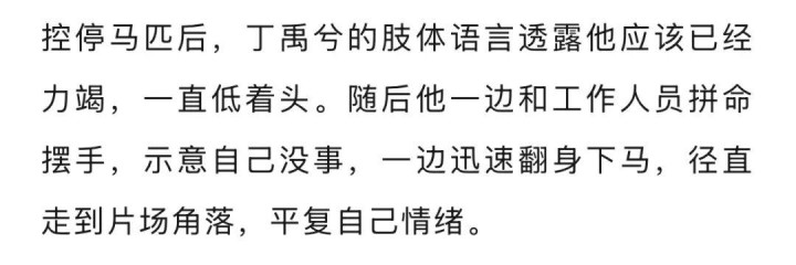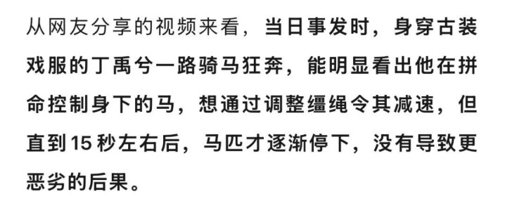30岁男演员丁禹兮拍戏时突发意外, 马匹失控暴冲, 致其险些坠马